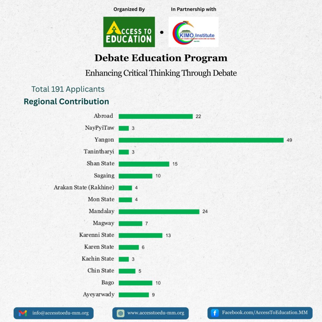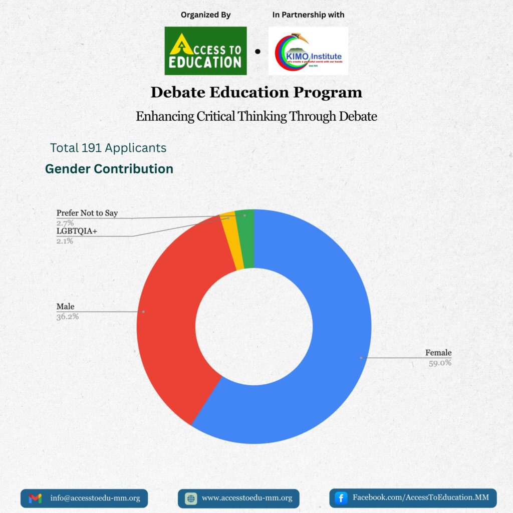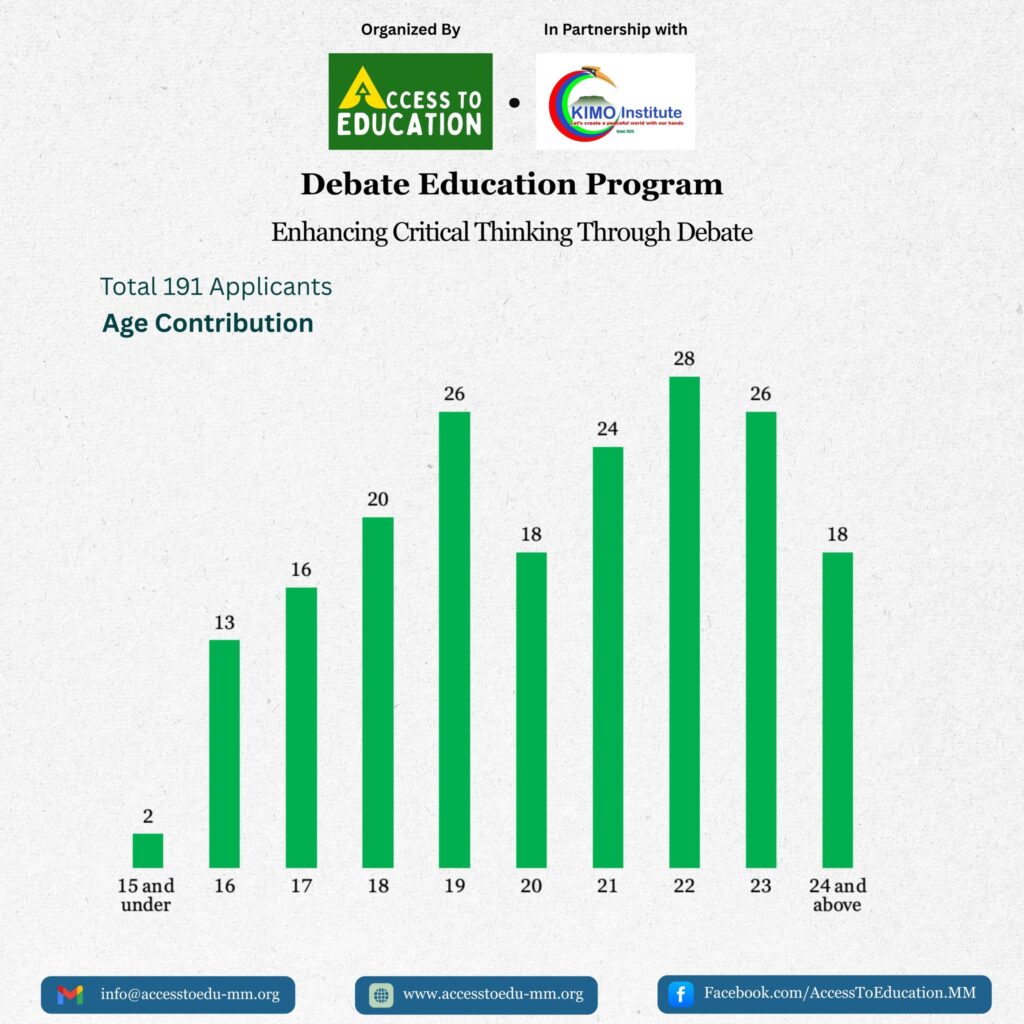 We have received a total of 191 applications applying to our Debate Education Program ranging from different ages, regions, and genders.